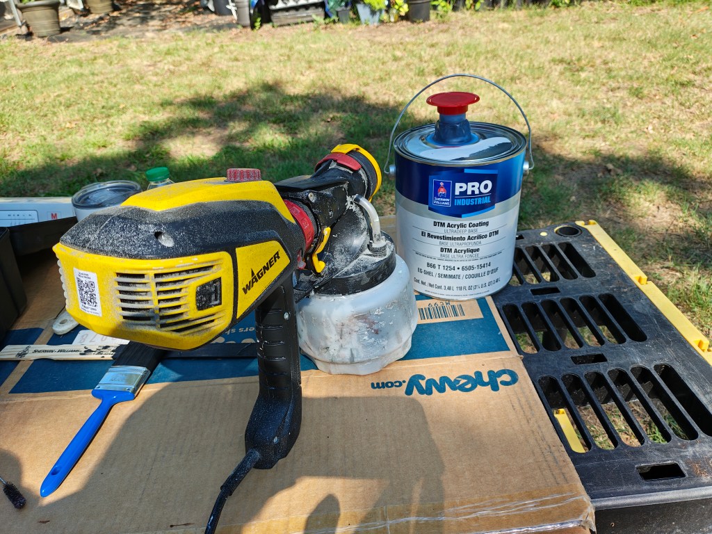 * Paint used Sherwin Williams DMC acrylic black. Water cleanup. Experience with this paint has proven it is tough and can hold up to the weather.